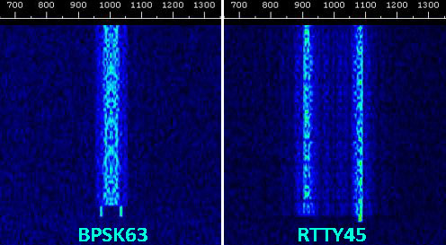 There is a link that I have already put on the web site so you can hear the signals but I thought it would be a good idea to show you a few – courtesy of THE Russian Data modes club. There are variants of above signals in speed and width ie’ BPSK63 is wider than a BPSK31 signal but not as wide as BPSK125 signal.